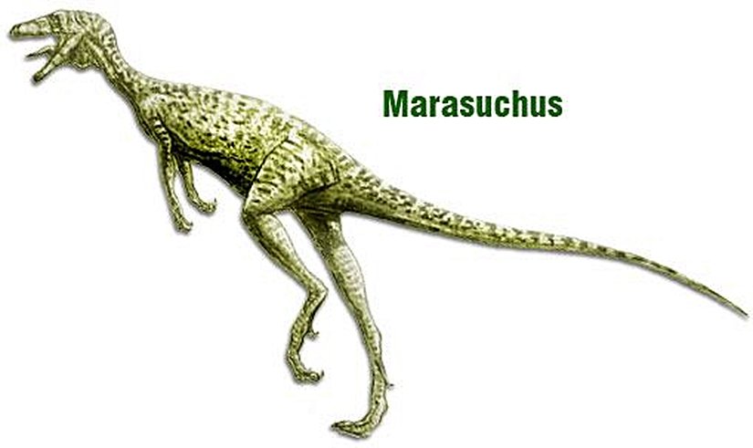 Marasuchus: Orta Triyasik Dönem'de, yani günümüzden 230 milyon yıl kadar önce yaşamış bir türdür. Ön kolları atalarınınkine göre daha da kısalmış, çene gücü azalarak kafa ağırlığı düşürülmeye çalışılmıştır. Kuyruk hala uzundur ve dengeleyici bir rol üstlenmektedir.