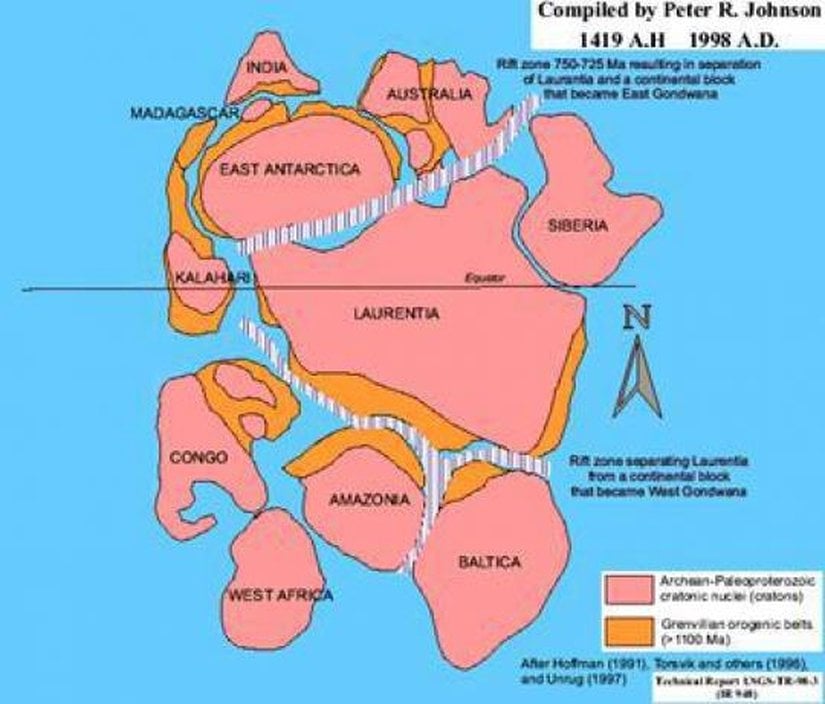 Öncelikle Dünya'nın "şekline" bakalım. Zira doğada hiçbir şeyin olmadığı gibi, Dünya da, Dünya'nın kıtaları da sabit kalmamaktadır, her bir kıta, her bir kara parçası, her bir "şey" sürekli olarak değişmektedir. Açıkçası bu kadar eski tarihlere ait kesin bir kara-deniz dağılımı göstermek çok güç, çünkü gerilere gittikçe eldeki verileri işlemek de zorlaşıyor. Dolayısıyla bahsettiğimiz zaman aralığı içerisinde net olarak bilebildiğimiz en eski tarihe, günümüzden 1.1 milyar yıl öncesine ve bu dönemdeki jeolojik yapılanmaya bakalım: