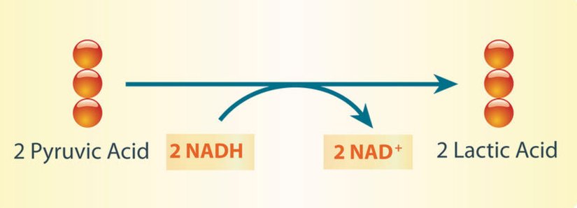 Laktik asit fermantasyonu, Laktat dehidrojenaz enzimi kullanılarak piruvatın laktata dönüştürülmesi ve bu süreçte NAD+ üretilmesi ile gerçekleşir. Bu süreçü oksijeni tükenmiş kaslarda ve bazı bakterilerde gerçekleşir. -1,3-Bisfosfogliserat üretmek üzere gliseraldehit-3-P'nin oksidasyonu için NAD+ gereklidir (bu, glikolizin 6. adımıdır). NAD+ kaynağı ETC veya fermantasyon tarafından yenilenmezse, glikoliz devam edemez. Fermantasyon, anaerobik organizmaların enerji üretmesi için gerekli bir süreçtir. Enerji verimi, organizmanın TCA döngüsü ve ETC yoluyla devam etmesinden çok daha azdır, ancak yine de enerji üretilir.