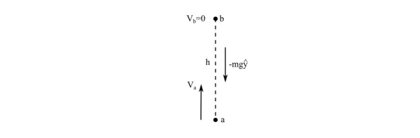 Wab=−mgh=0−KEa=−12mva2mgh=12mva2h=va22g\Large W_{ab} = -mgh = 0 - \text{KE}_a =- \frac{1}{2}mv_a^2 \newline