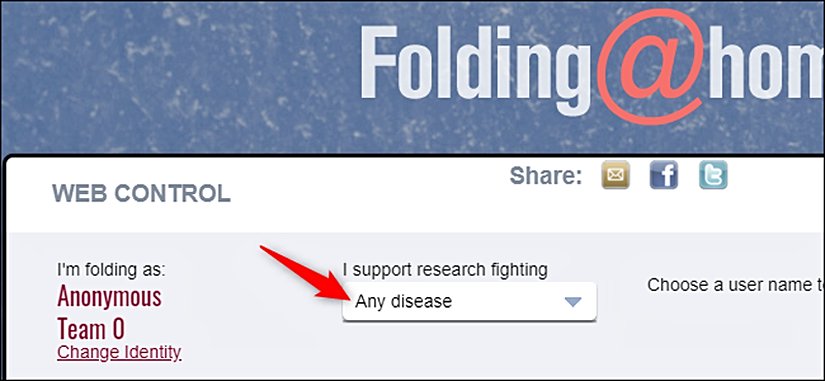 COVID-19 araştırmasına yardımcı olduğunuzdan emin olmak için, "I support research fighting" (Araştırma mücadelesini destekliyorum) kutucuğunun altında yer alan “Any disease" (Herhangi bir hastalık) kutucuğunu seçtiğinizden emin olun. Bu zaten varsayılan seçenektir. Böyle yapıldığı takdirde, Folding@home, yeni koronavirüs ile ilgili çalışmalara öncelik verecektir.
