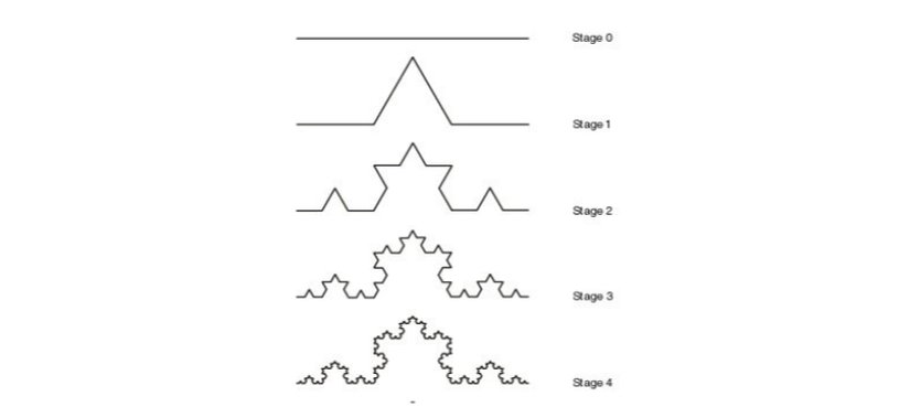 Basit bir eşkenar üçgen çizin. Sonra bunu üç parçaya bölerek ortadaki parçayı çıkarın. Ardından çıkardığınız yere, tabanıyla aynı uzunluğa sahip iki kenar daha çizerek bir üçgen daha oluşturun. Üç birim uzunluğa sahip bir kenarı, dört birim uzunluğa çıkarmış olacaksınız. Ardından bu süreci her kenar için tekrarlayarak devam edin. Tıpkı aşağıdaki gibi.