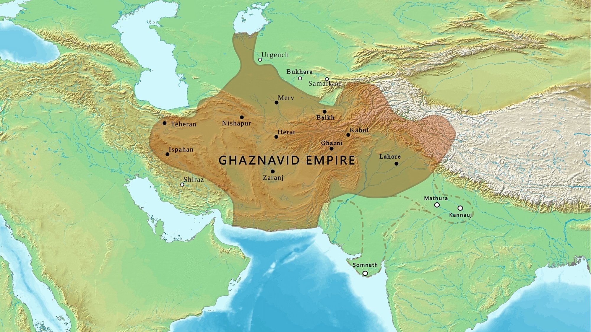 Aşağıda teşkilat yapısından ayrıntılı olarak bahsedeceğimiz Gazneliler Devleti (963-1186)'nin hakim olduğu coğrafya Horasan, Afganistan ve Kuzey Hindistan'dan müteşekkildir. Sayılan bu coğrafya Gazneliler Devleti için kurulan çoğu müessesenin en önemli sebeplerinden bir tanesidir.
