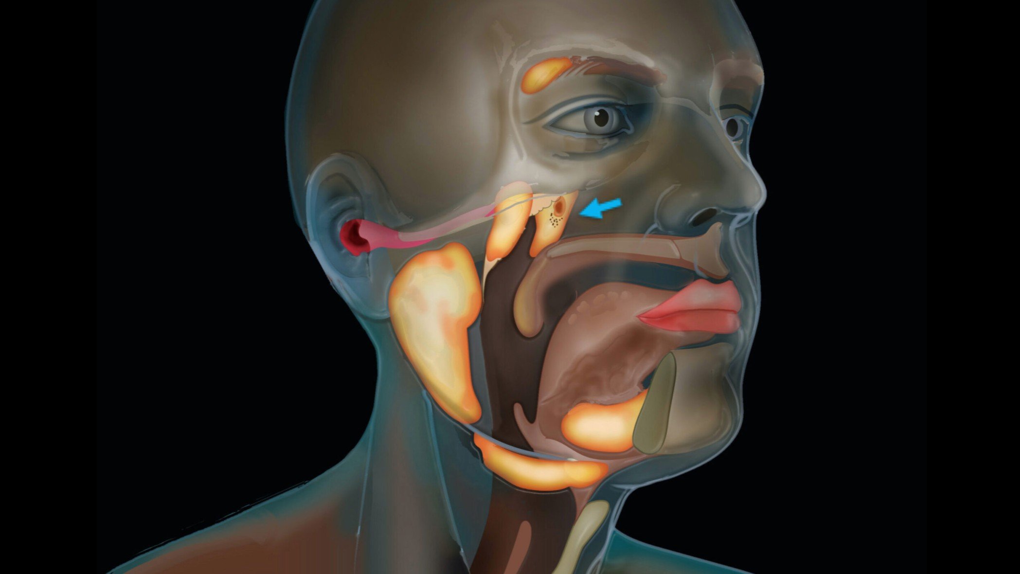Hollanda Kanser Enstitüsü'nde prostat kanseri hastalarında yapılan çalışmada, görüntüleme yöntemleri ile daha önce tanımlanmamış bir çift tükürük bezi varlığından şüphelenildi. Prostat spesifik membran antijen ligandları (PSMA) işaretlenmiş 100 hasta, pozitron emisyon tomografisi/bilgisayarlı tomografi (PET/BT) altında görüntülendi. Ardından nazofarinks (geniz) bölgesinde daha önce bilinmeyen bilateral (çift taraflı) yeni tükürük bezleri tanımlandı.