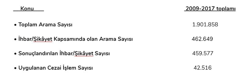 Bu sorunları doğrudan doğruya gidermek amacıyla bakanlığa bağlı ALO 174 Gıda Hattı kurulmuştur. Bu telefon hattı "tüketicinin gıda güvenilirliği ile ilgili her türlü ihbar ve şikâyette ilgili merciye kolay bir şekilde ulaşabilmesi, iletişimin tek merkezden yönlendirilmesi, tüketiciye en kısa zamanda dönüş yapılabilmesi ve sonucun takibi" amacıyla hizmete başlamıştır. Bu süreçte tamamen gıda güvenilirliğinin sağlanmasına yönelik olarak Gıda ve Tarım Bakanlığı'nca yapılan çalışmalara vatandaşların da iştirak etmesi hedeflenmiştir. Aşağıdaki verilerde Gıda ve Kontrol Müdürlüğüne bağlı Alo Gıda hattına gelen aramalar gösterilmiştir: