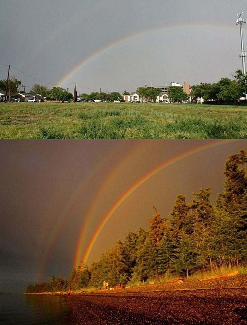 Siz hiç hayatınızda 2'li veya 4'lü gökkuşağı görmüş müydünüz? İşte size birer örneği... 2'li olan bizzat benim tarafımdan ABD'de çekildi. Dörtlü olansa bir başka internet kullanıcısı tarafından çekilmiş. Peki bu nasıl oluyor?