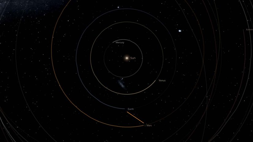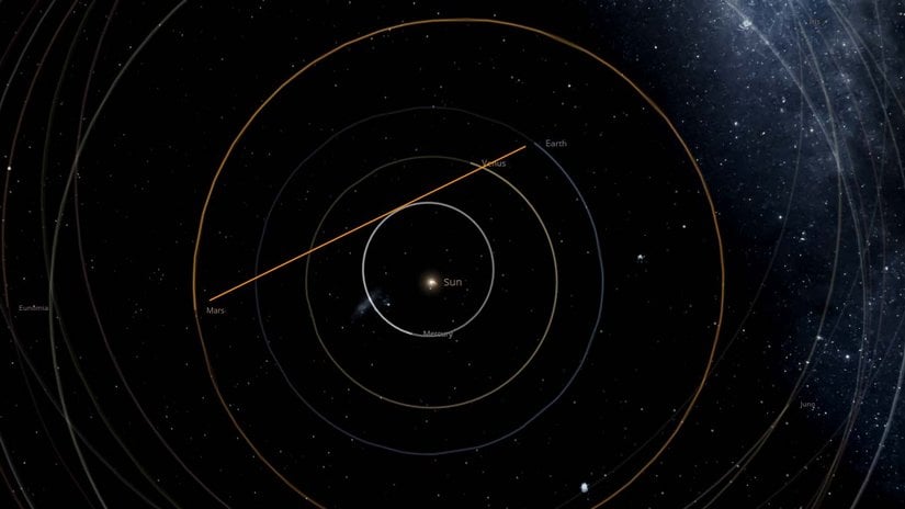- 2020 yılındaki yakınlaşma sırasında Mars'ın Dünya'ya uzaklığı: 62.1 milyon kilometre.