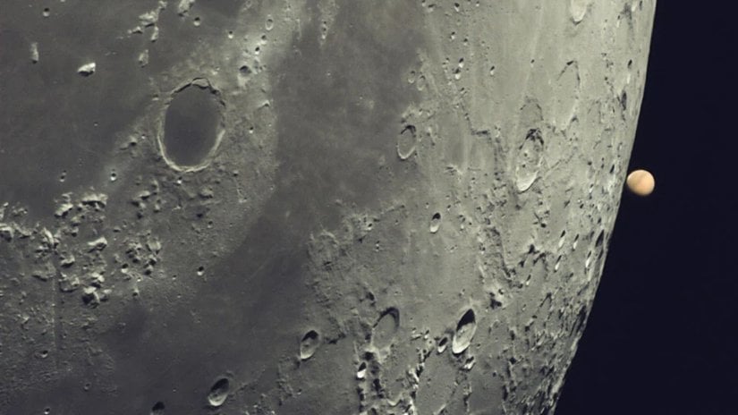 Mars'ın görünebileceği en büyük hali, Ay'dan 72 kat daha küçüktür. Aşağıdaki görsel 9 Ağustos 2020 tarihinde çekildi. Yani Mars olası en büyük konumuna oldukça yakınken. Bu halde bile Ay'a kıyasla ne kadar küçük olduğunu rahatlıkla görebilirsiniz. Görselde Ay'a o kadar yaklaşılmış ki yüzeydeki küresellik sadece hafifçe belli oluyor. Buradan da Mars Ay kadar görünecek haberinin saçmalığını bir kez daha görebilmekteyiz.