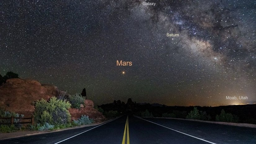 Aşağıdaki görselde gökyüzünde Mars'ı görebilirsiniz: