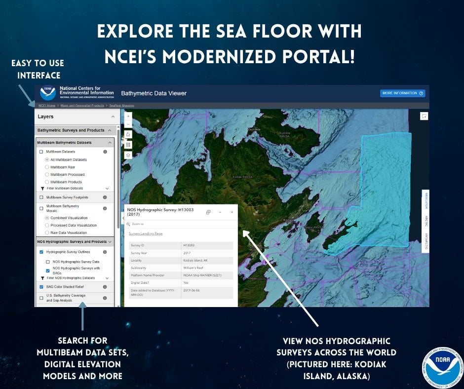 🌊 Dünya Günü kutlu olsun! NOAA'nın Ulusal Çevresel Bilgi Merkezleri (NCEI), Batimetrik Veri Haritası Görüntüleyici'nin kısa süre önce güncellendiğini duyurmaktan heyecan duyuyor. Bu güncelleme; daha yüksek performans ve duyarlılık, gelişmiş mobil kullanılabilirlik, daha güçlü arama/filtreleme özellikleri ve kullanıcılar için artırılmış erişilebilirlik sağlayacak.