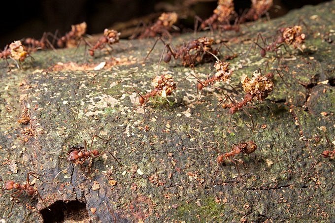 • Bunun sebebi, bazitli mantarların (Basidiomycota) salgıladıkları kimyasalların karıncaların düşmanlarını yuvadan uzak tutması. İnsanlar, köpekleri bazı özelliklerine göre seçip evrimleştirdiği gibi karıncalar da salgılanan kimyasallar açısından basidiyomiket grubu mantarları seçmekte ve yapay olarak istekleri doğrultusunda evrimleştirmekte.