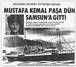 19 Mayıs 1919 - Mustafa Kemal Paşa'nın 9. Ordu Müfettişi olarak Anadolu'ya Samsun'dan ayak basması ve Millî Mücadele'yi başlatması.