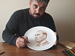 Atatürk’ü, mat bir seramik tabak  üzerine sepya tonlarla çalıştım.