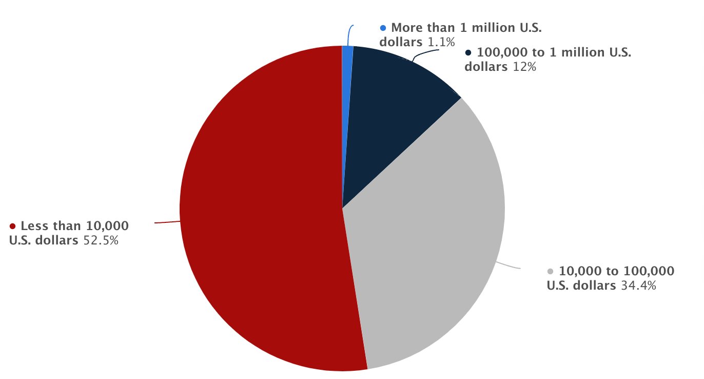 Buna karşılık Dünya nüfusunun %52.5'inin 10.000 dolardan az parası var.