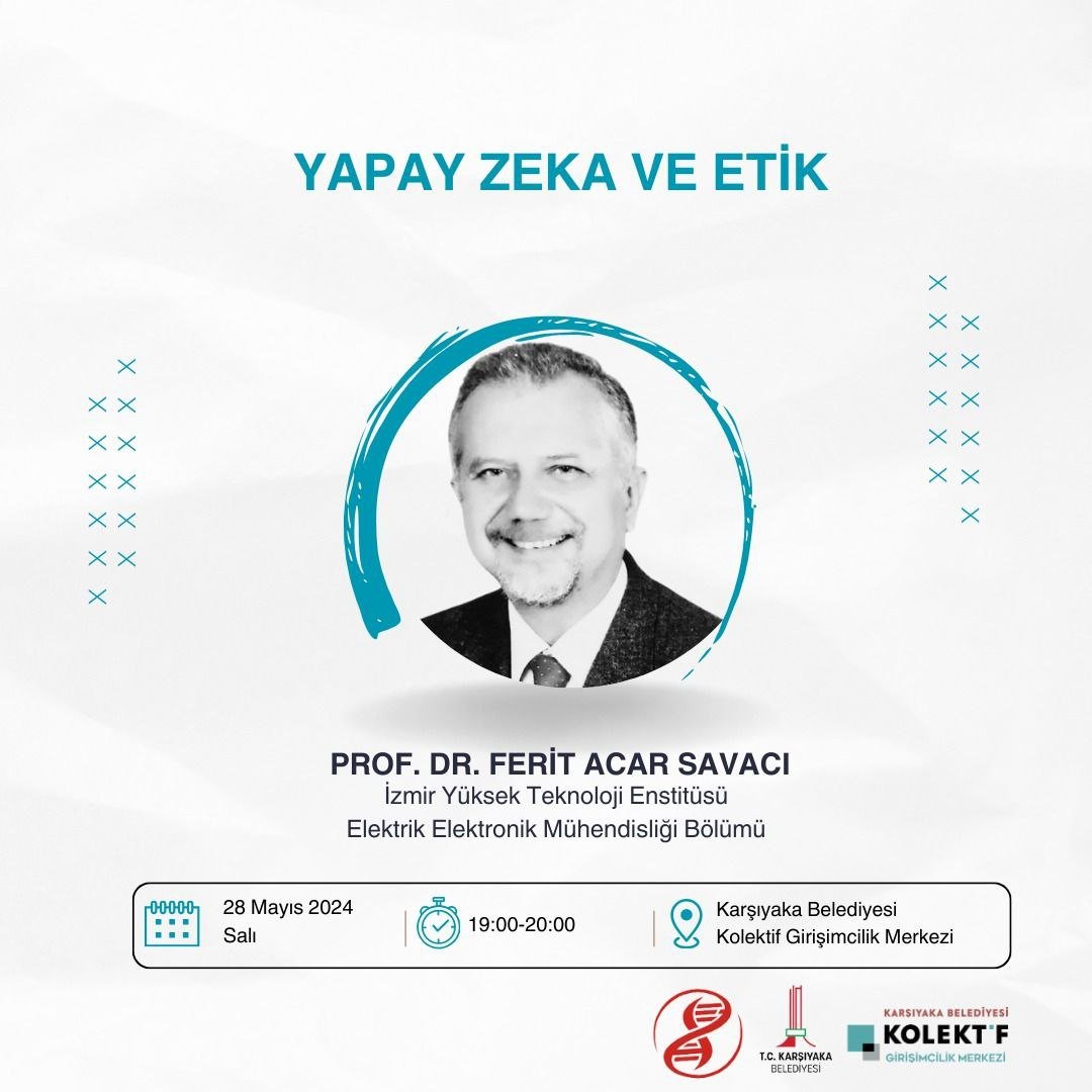 Yapay zeka teknolojilerinin hızla geliştiği günümüzde, etiğin önemi her geçen gün artıyor. Günümüzün en popüler teknolojik atılımı sayılan, belki de bir devrim olan yapay zeka, gelecekte topluma ve bize ne gibi etik sorunlar ve yararlar getirecek? Prof. Dr. Ferit Acar Savacı'nın katılımıyla gerçekleştireceğimiz bu panelde, bu sorulara cevap ararken, yapay zekanın toplumsal etkilerini, etik sorunlarını ve geleceğini tartışacağız.