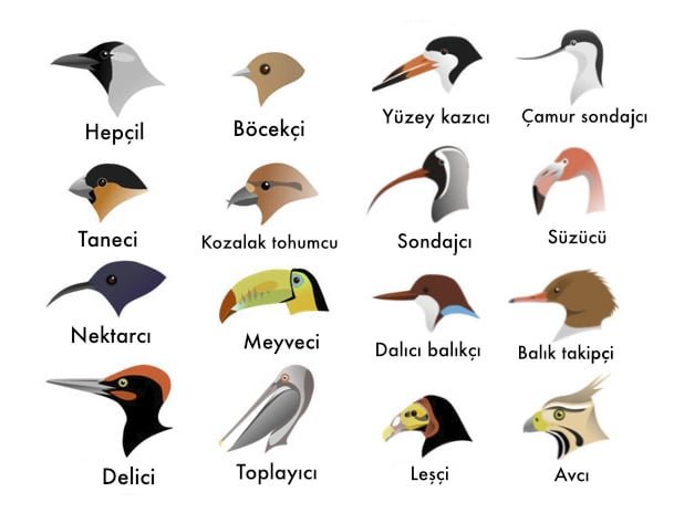 66 milyon sene önce Dünya'ya çarpan meteorun etkisiyle çeşitliliği artan avian dinozorlar (kuşlar) ve seçilim baskısıyla şekillenen çeşitli gaga yapıları.