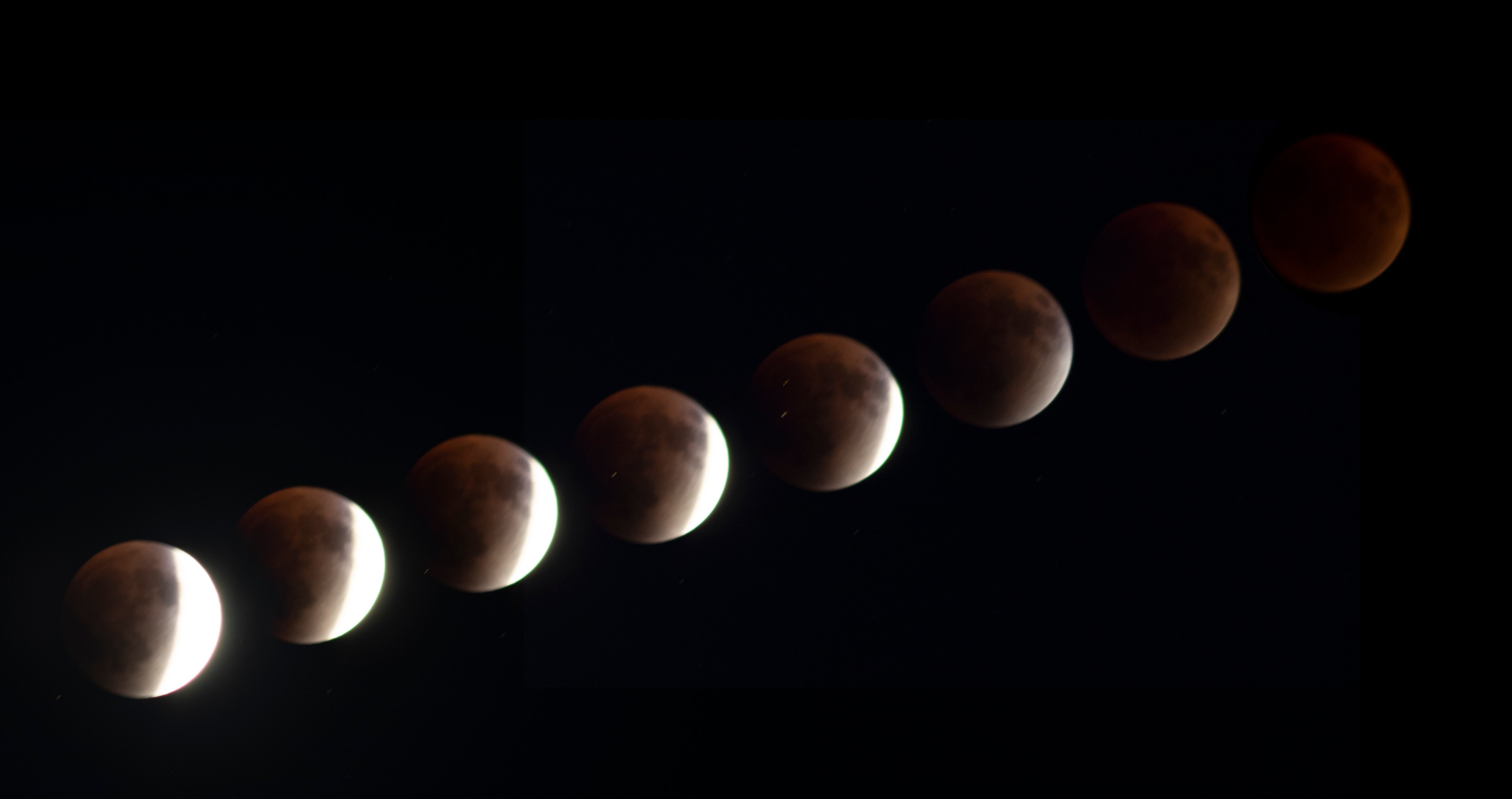 7 Eylül'de gerçekleşen ve Asya, Afrika, Avrupa'nın büyük çoğunluğundan gözlemlenen tam Ay tutulmasından ufak bir kompozit. O akşam tutulma olduğunu hatırladığımda çoktan Ay'ın yarısı kararmıştı...