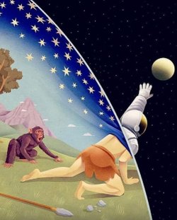 8 milyon sene önce yeni ağaçlar keşfeden bir primat, bugün evreni keşfetmekte...
