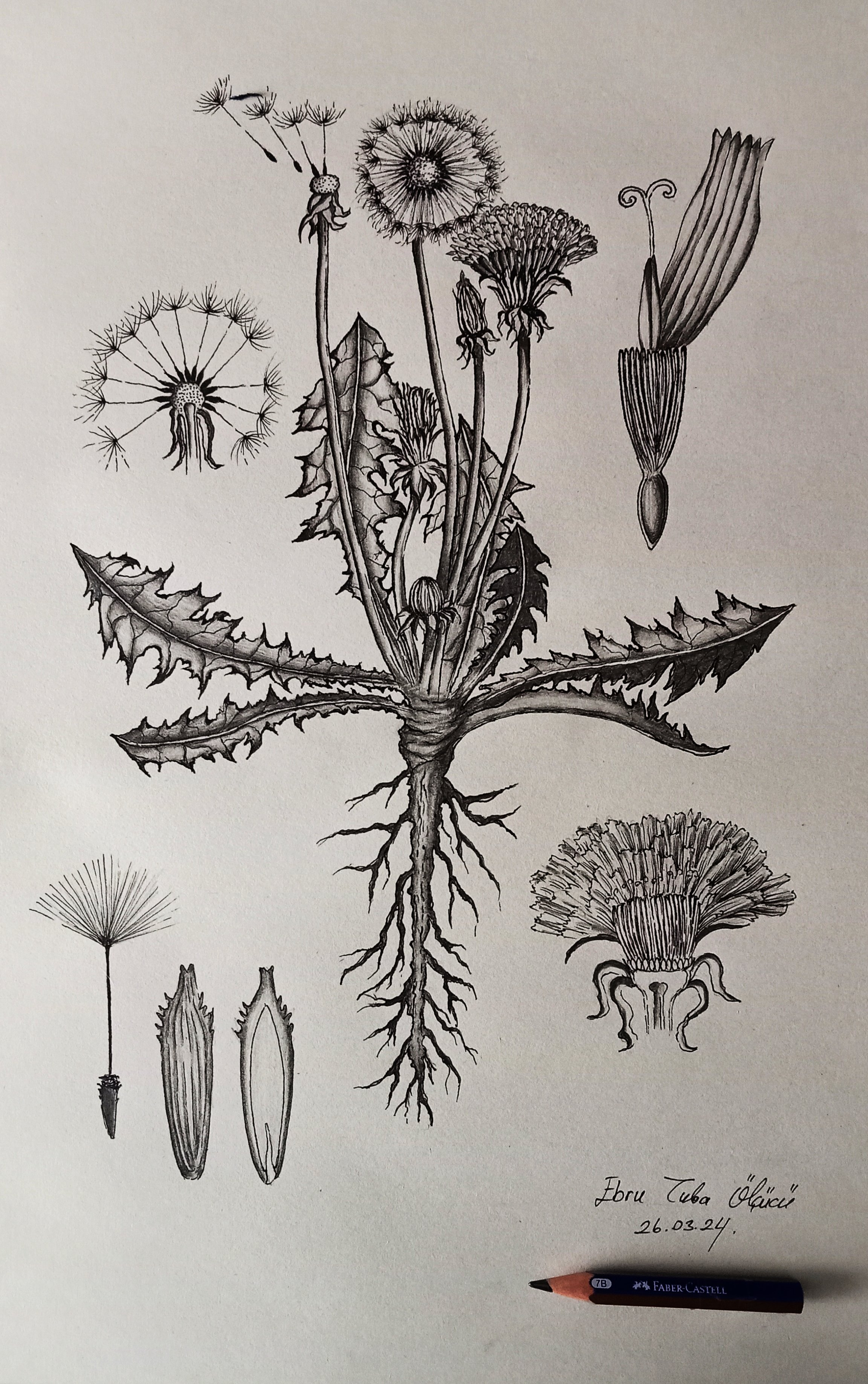 A3 üzerine Taraxacum officinale (Karahindiba) morfoloji çizimim. Çizmesi keyifli bir bitki türü!