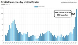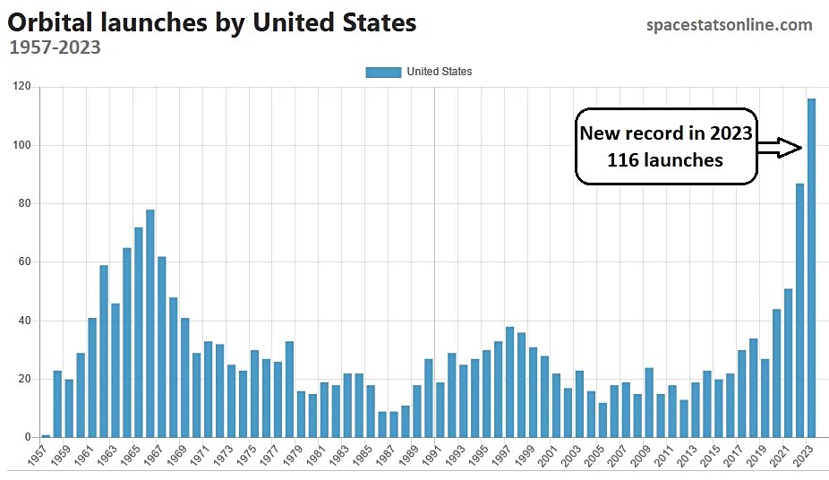 ABD, yılında yörüngeye 116 fırlatma yaparak kendi rekorunu kırdı. Fırlatmaların 96 tanesi SpaceX tarafından yapıldı.
