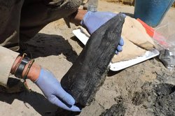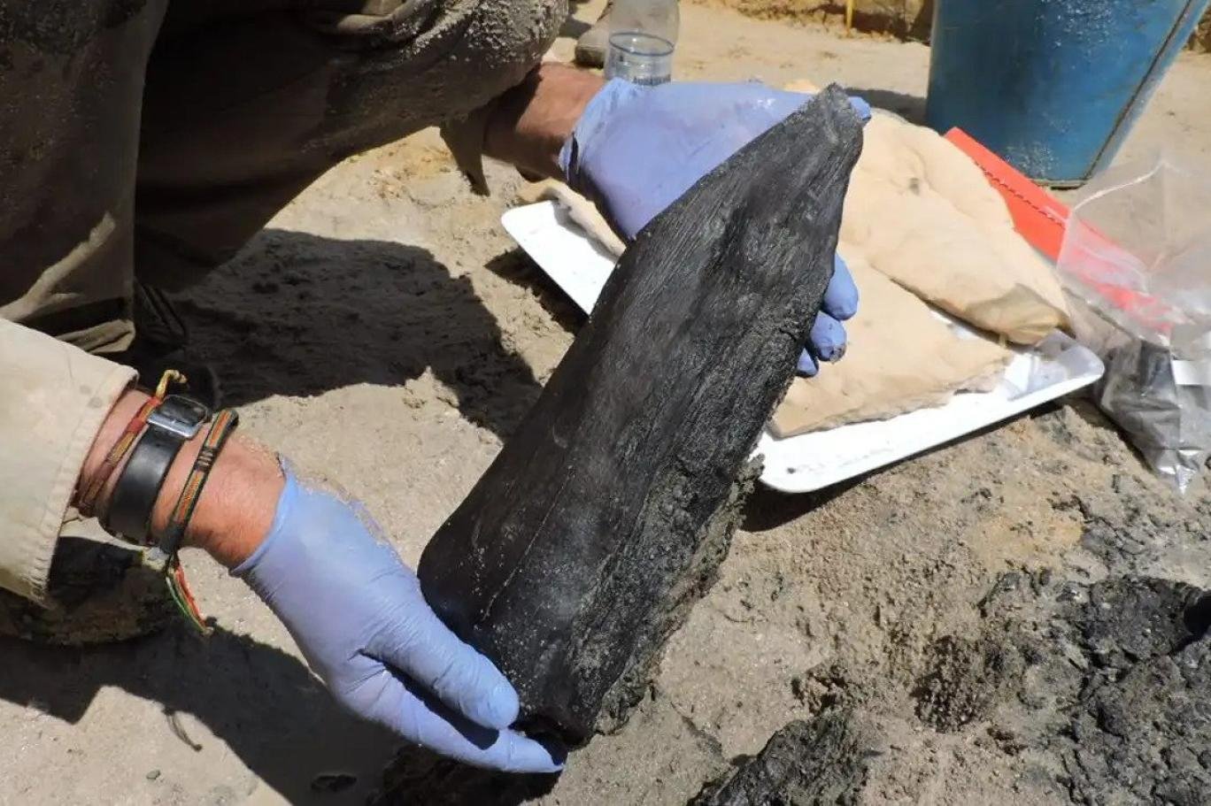 (Alandaki ahşap yapıyı şekillendirmek için kullanılan çakmaktaşı 400 bin yıldan eski.)