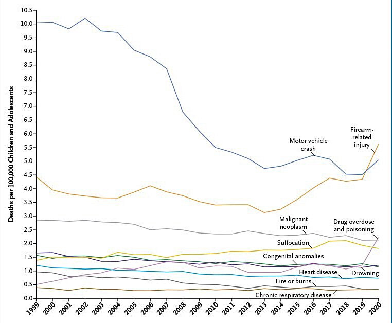 Amerika'da çocuklar ve gençler arası 1 numaralı ölüm nedeni artık trafik kazaları değil; silahla yaralanma. Ayrıca uyuşturucu kullanımı ve zehirlenme de çok hızlı bir yükselişte...