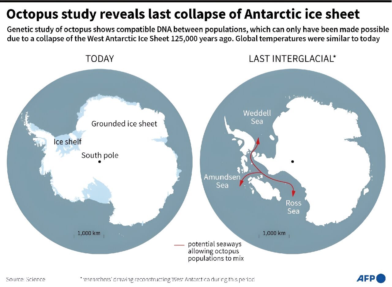 Antarktika'nın buz tabakalarının geçmişte nasıl çekildiğini araştıran bilim insanları, yeni bir yaklaşım benimsedi: Soğuk sularında yaşayan ahtapotların genlerini incelemek. Yayınlanan bir analiz, sekiz uzuvlu deniz canlılarının coğrafi olarak izole edilmiş popülasyonlarının yaklaşık 125.000 yıl önce serbestçe çiftleştiğini ve bu dönemde küresel sıcaklıkların bugüne benzer olduğu bir zamanda buzsuz bir koridora işaret ettiğini ortaya koyuyor. Bu bulgular, Batı Antarktika Buz Tabakası'nın çökmeye daha yakın olduğunu gösteriyor ve dünyanın insan kaynaklı ısınmayı durdurması halinde bile deniz seviyesinin uzun vadede 3,3 ila 5 metre yükselebileceği tehdidini ortaya koyuyor. James Cook Üniversitesi'nden başyazar Sally Lau, deniz omurgasızlarına odaklanarak DNA ve biyolojiyi kullanarak Antarktika'daki geçmiş değişiklikleri anlamaya ve uygulamaya çalıştığını belirtti.