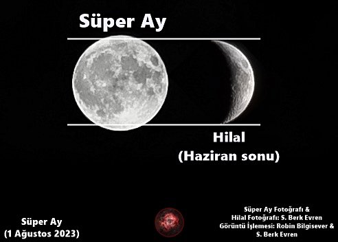 Astronomik Disiplinler Ekibi olarak 1 Ağustos 2023 günü meydana gelen Sturgeon Süper Ay'ın haziran sonundaki Ay'a göre boyut farkını göstermek için bu karşılaştırmalı görseli hazırladık.