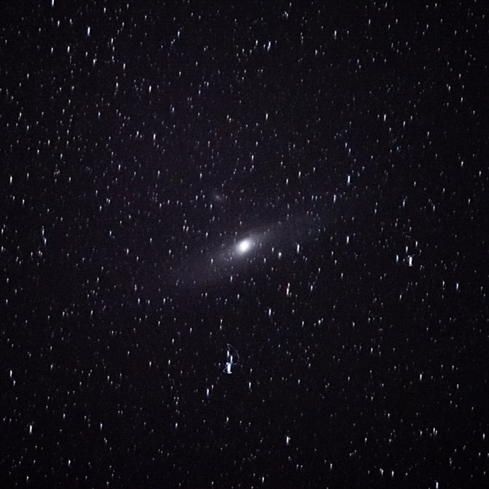 Galaksimizin en yakın komşusu, şu an görselde de gördüğünüz Andromeda Galaksisidir. Andromeda, Samanyolu Galaksisinden yani bizim galaksimizden yaklaşık 2.3 milyon ışık yılı uzaktadır ve hızla bize doğru yaklaşmaktadır. Işık kirliliğinin olmadığı ve hava şartlarının iyi olduğu bir gecede, çıplak göz veya optik bir gözlem aracı ile oldukça soluk şekilde ayırt edilebilmektedir. Görmüş olduğunuz fotoğrafı, Bursa'da yapılan bir gökyüzü gözlem etkinliğinde, 70-200mm lens takılı bir Nikon D750 kamera ile çektim. Gözlerinizin yanı sıra sahip olduğunuz bir aletin, milyonlarca ışık yılı uzaklardan gelen fotonları sensöründe birer elektrik sinyaline dönüştürmesi ve size bunun gibi sonuçlar vermesi bence oldukça etkileyici ve ilginç bir durum. Çözünürlük gibi teknik kısıtlamalar sebebi ile ayırt edemesek de, bunun gibi çekilen her gökyüzü fotoğrafında sayı mertebesini dahi tahmin edemeyeceğimiz kadar çok yıldızın, gezegenin, bulutsunun ve belki de dünya dışı yaşamın izleri bulunuyor. Bence sadece bu düşünce, bir insanın bilimle ve spesifik olarak uzay bilimleri ile uğraşmasını sağlamaya oldukça yeterli olacak bir motivasyon.