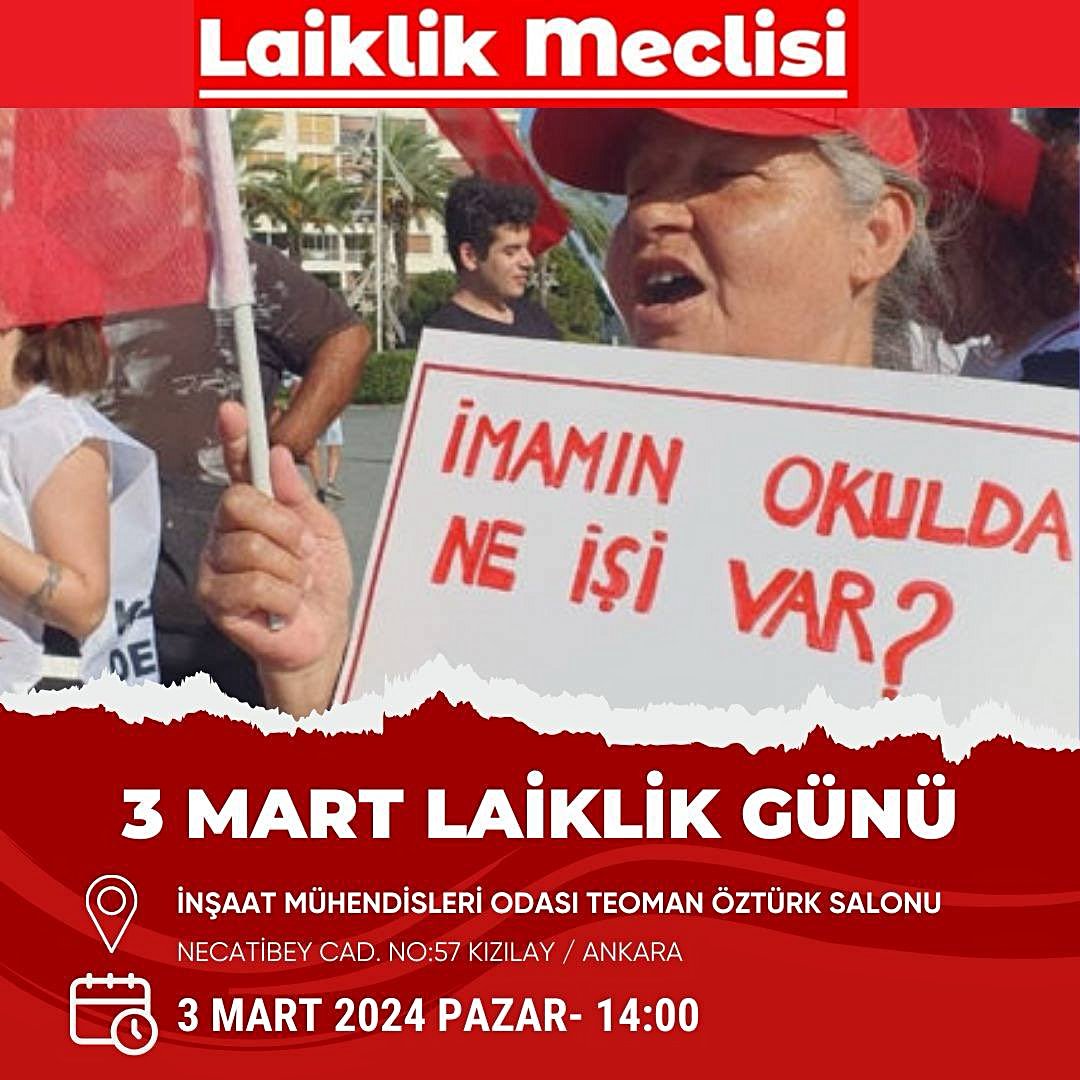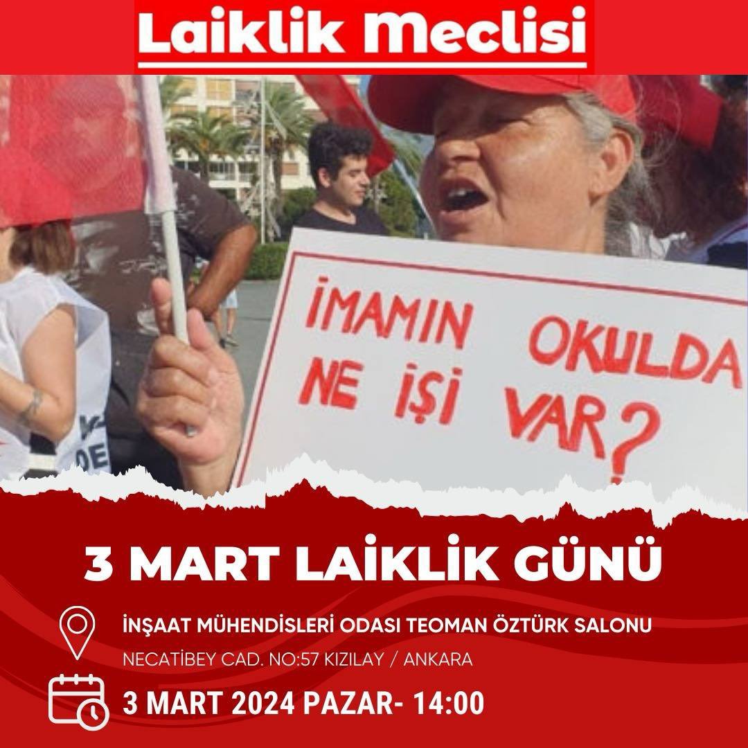 Laiklik Meclisi 3 Mart'ı Laiklik Bayramı ilan etti, Ankara'da 3 Mart Laiklik Bayramı kutlamasına tüm bilimseverleri kendi adıma davet ediyorum.