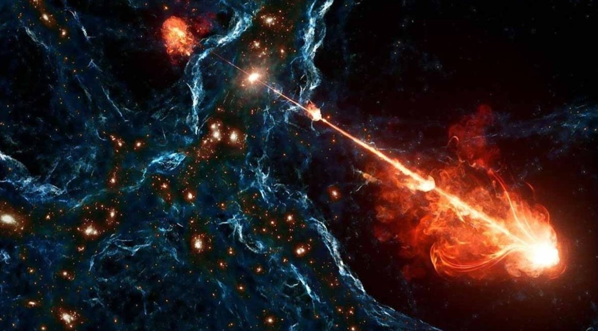 Gökbilimciler,Dünya'dan yaklaşık 7,5 milyar ışık yılı uzaklıktaki bir galaksinin merkezindeki süper kütleli bir karadelikten fışkıran devasa ikiz jetleri keşfetti.Toplam 23 milyon ışık yılı uzunluğunda olan jetler,yan yana dizilmiş 140 Samanyolu Galaksisi'nin genişliğine eşdeğer bir mesafeye ulaşıyor.