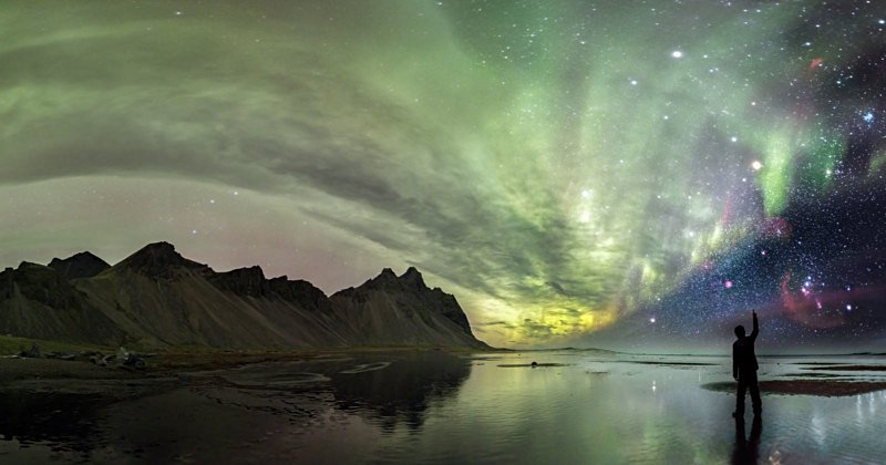 Roi Levi, yeni bir yöntem kullanarak aurora ışıklarını ve Orion takımyıldızını muhteşem bir görüntüde yakaladı. Görüntüdeki yıldızların etrafında görülebilen kırmızı hidrojen tozu, astrofotoğrafçılık için tasarlanmış özel bir nebula filtresi olan H-alfa takılı bir Canon EOS Ra ile yakalandı. Roi, Vesterhorn dağının yakınındayken lensini Orion ile hizalamak için PhotoPills uygulamasını kullandığını söylüyor.