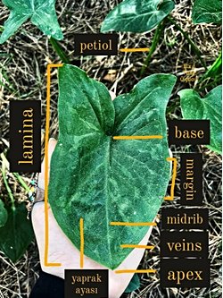 Bu bir Arisarum vulgare'nin, Türkçe ismiyle Yılancıkotu'nun yaprağı. Yaprak formları her zaman alışık olduğumuz şekillerde olmayabilir. Yaprak şekillerini basit, yani bir saptan çıkan tek ayalı ve bileşik, yani bir sapta iki veya daha fazla aya içermesi olarak ikiye ayırıyoruz. Aşağıda yaprakları daha yakından tanımak adına yaptığım şablonda, basit yaprak şeklini ve onun bölümlerini görebilirsiniz. Basit yaprakları ise linear, lanseolat, subulat, ovat, oblong, hastate, reniform, lirat gibi daha birçok alt kategoriye ayırıyoruz. Peki Arisarum vulgare'nin yaprak kategorisi hangisi? Cevap hastate. Herkese bol yeşil günler!