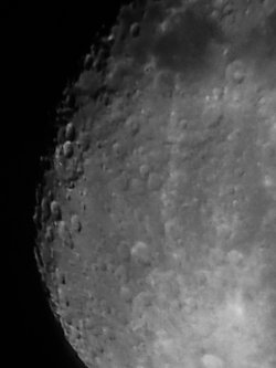 Bu da daha küçük çaplı bir mercek kullanılarak çekilen bir Ay görüntüsü. Bunu çekmek bayağı zor olmuştu çünkü teleskop cidden dandikti.