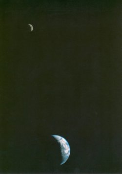 Bu fotoğraf, an itibari ile Dünya'dan 24.37 milyar kilometre uzakta bulunan, Voyager 1'in 18 Eylül 1977'de Dünya'dan 12 milyon km uzakta çektiği Ay ve Dünya'nın aynı kare içinde bulunduğu ilk fotoğraftır. Voyager 1 bundan tam 34 yıl önce, 14 Şubat 1990'da 6 milyar km uzaklıktan, Carl Sagan'ın ismini koyduğu "Pale Blue Dot" fotoğrafını çekti. Beni inanılmaz heyecanlandıran bu iki fotoğrafın sahibi, Voyager 1'in anlık olarak konumunu gösteren NASA'nın sitesine aşşağıdaki linkten ulaşabilirsiniz.