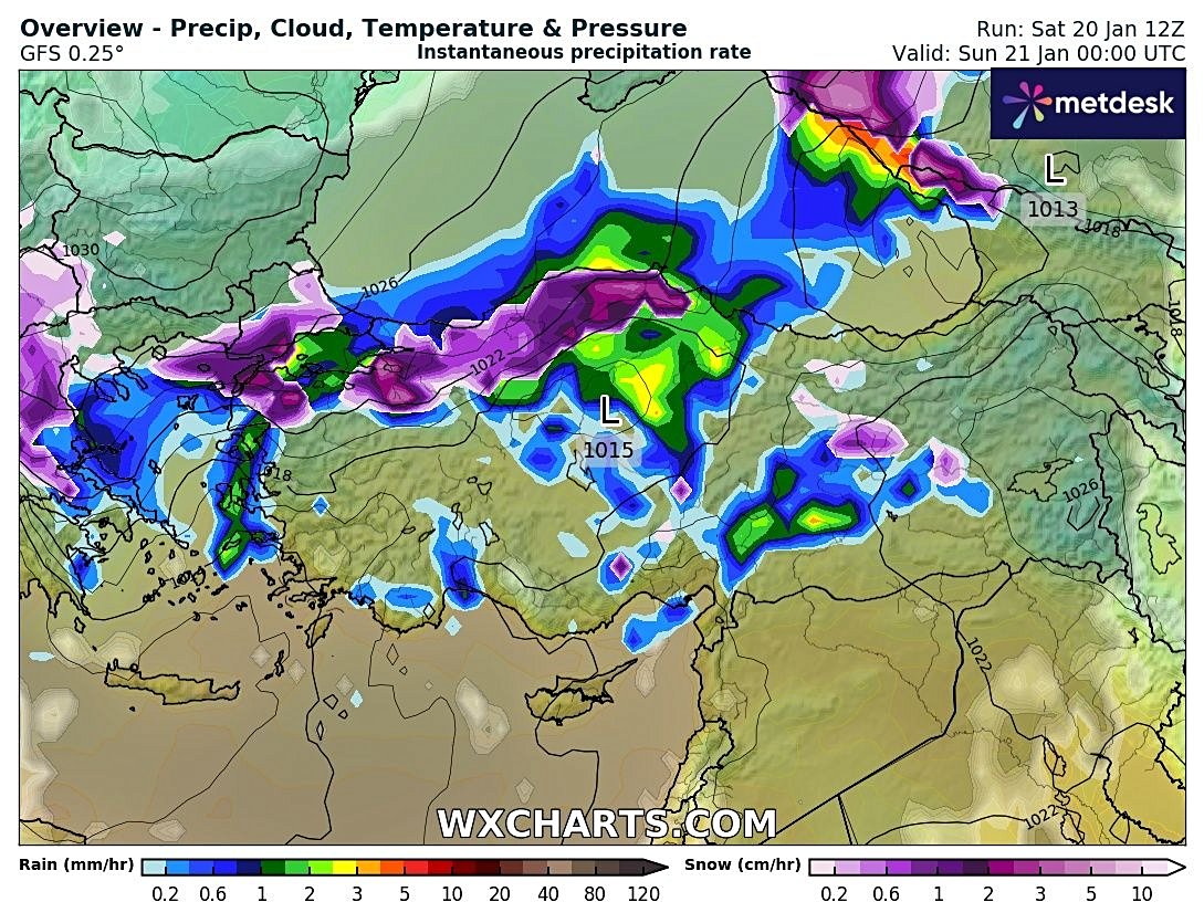 Bu gece Batı Karadeniz'in iç kesimlerinde ve Orta Karadeniz genelinde şiddetli kar yağışları var aşağıdaki haritadaki mor kısımlarım tamamı kar, şiddetini aşağıdaki grafikten anlayabilirsiniz. Tedbirli olunmalı.