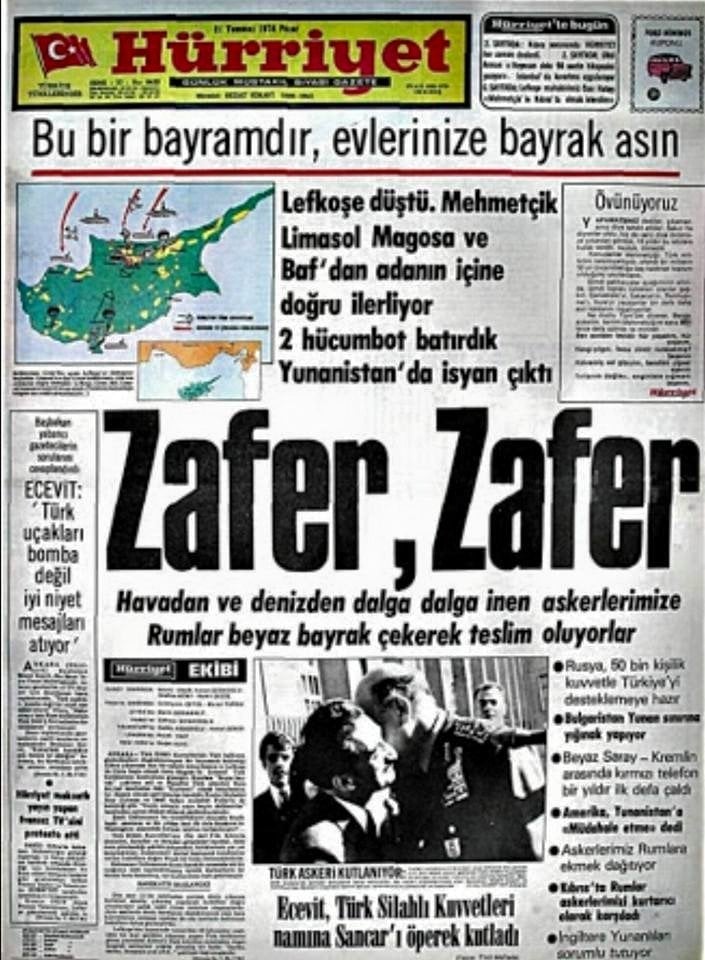 Bu gün "Kıbrıs'ın Barış ve Özgürlük" Bayramı kutlu olsun! Barış Harekâtının 51. Devri senesi ve Rum yönetimi altındaki Türklerin özgürlüğünün yıldönümü.