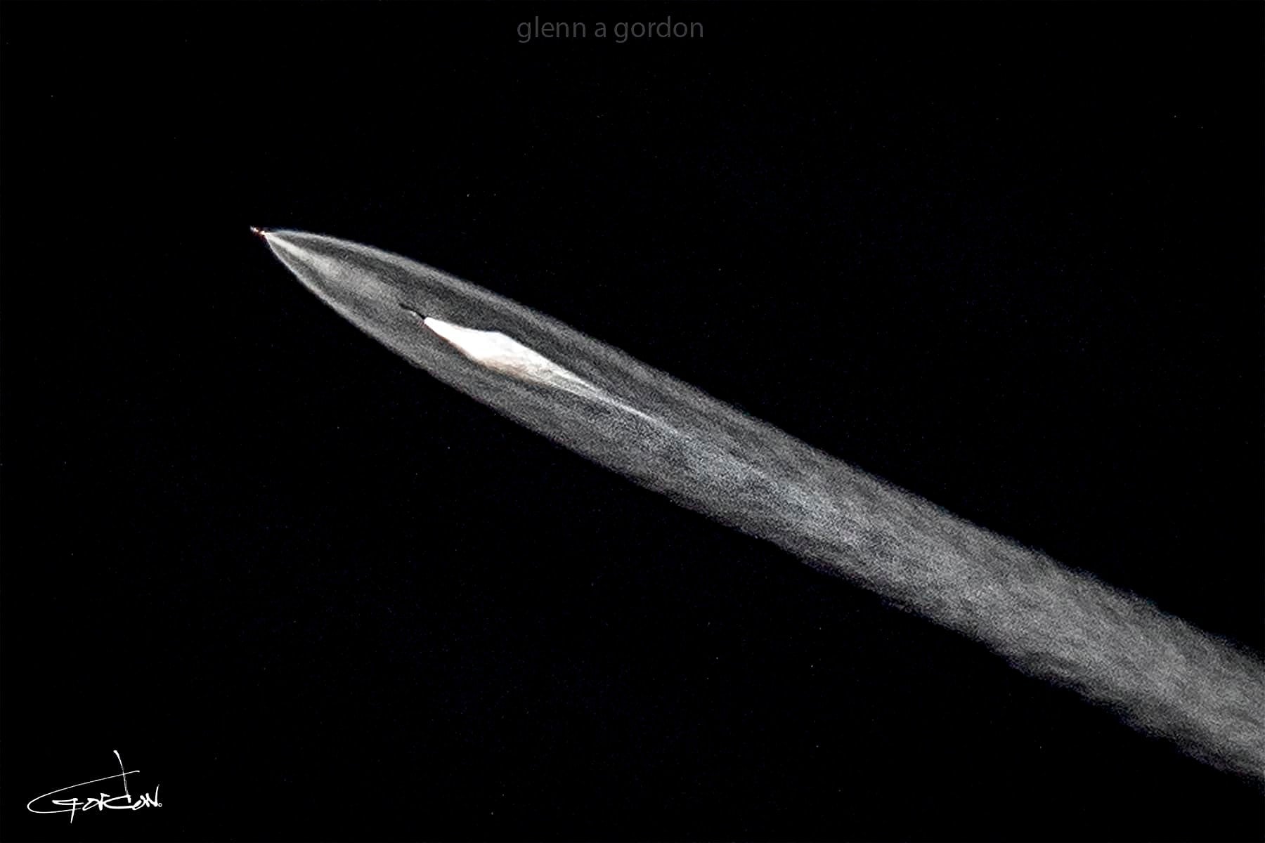 Bu harika fotoğrafta, zırt pırt "uzaylılar" ile karıştırılan SpaceX fırlatmalarında "sperm"e benzeyen o duman şekillerinin oluşmasına neden olan "roket ayrılması" (İng: "booster separation") evresi görülüyor.