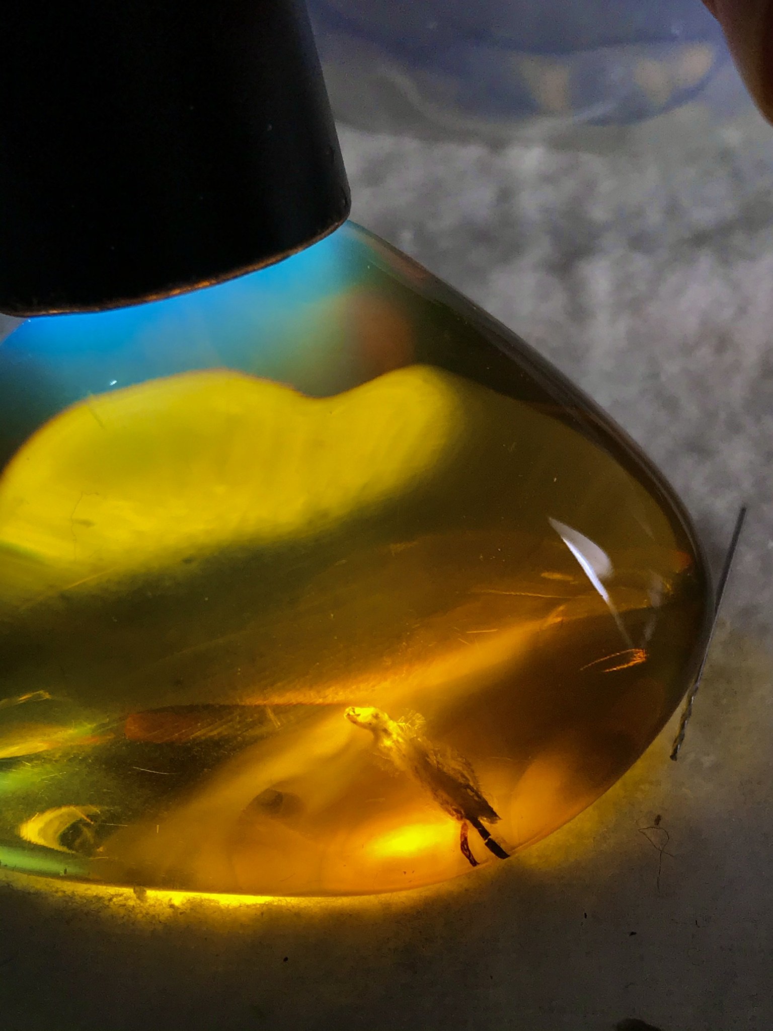 Bu taş mavi Dominik kehribarıdır. Kayayı ben işledim. Ancak içerisinden böyle hayvana benzer birşey çıktı. Acaba bu hayvan mı eğer hayvansa hangi tür hayvan olduğunu nasıl öğrenebilirim.