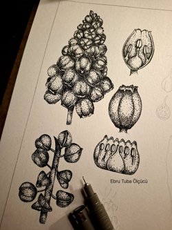 Bugün Dağ sümbülünü (Muscari arnemiacum) çizerken pek çok şey düşündüm. Bitkiler doğanın zarif ve karmaşık dengesinin birer yansıması ve onları çizerken her detayda bir anlam buluyorum. Her bir yaprak, çiçek ve dal, kendimi ifade ettiğim bir yol haline geliyor! Kocaman bir şehirde kaldırımların üzerinde yürürken, taşların arasından fışkıran bitkilerin bu muazzam yolculuğu beni çok tatmin ediyor. Onların değerini daha fazla anlamak dileğiyle, bol hoş kokulu çiçekli günler! ♥