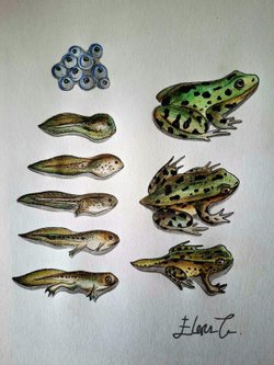 Çizimime konuk olan kurbağalar, aslında bence doğadaki en ilginç dönüşümlerden birine tanıklık ediyor. Küçükten büyüğe, suya bağlı yaşamdan karaya adım atan birer yetişkin kurbağaya dönüşmeleri, bana her zaman doğanın gücünü hatırlatıyor. Çizimimde bu büyüleyici yolculuğun her aşamasını keşfetmek ve kurbağaların gizemli evrimini yakından gözlemlemek çok keyifliydi!