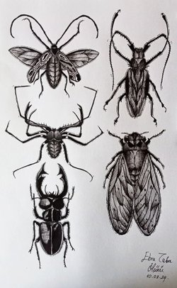 Çizmekten çok keyif aldığım A3 üzerine böcek illüstrasyonlarım.