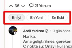 Evrim Ağacı Sosyal'de yorumlara şöyle bir sıralama aracı getirdik. Uzun sohbetleri biraz daha kolaylaştırmasını umuyoruz. ♥