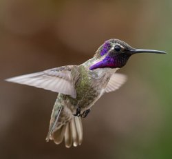 Amerika’nın güneybatısında ve Meksika’nın kuzeybatısında yaşayan bu kuş, yaklaşık 9 santimetre uzunluğunda ve 3 gram ağırlığındadır. Çoğunlukla çiçek nektarları ve böceklerle beslenen türün erkekleri, taç ve gerdanındaki mor renklerle dikkat çeker.