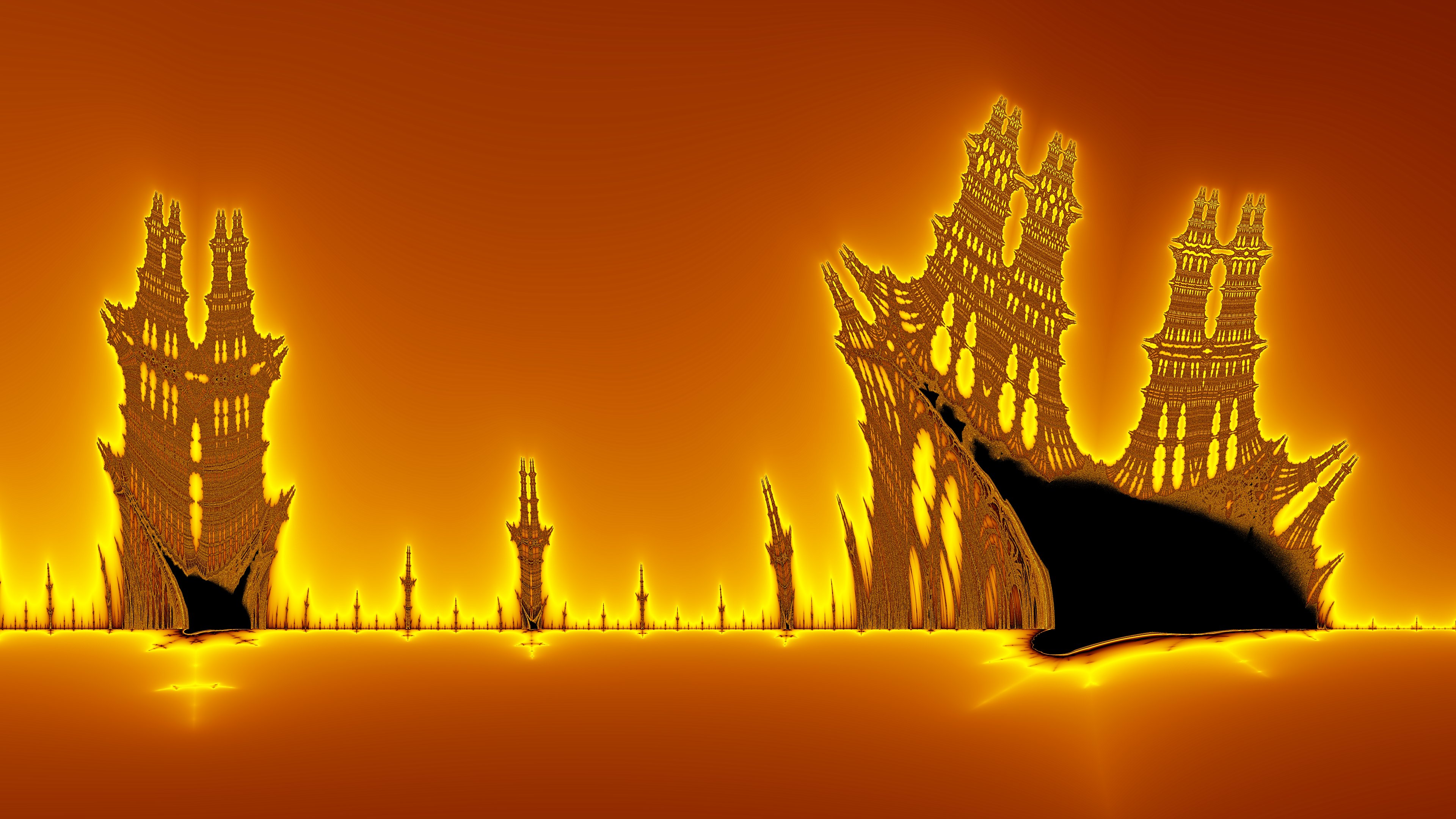 Değişik bir fraktal buldum. Adı yanan gemi. Formülü şu(Wordpress'e göre): z=abs(z)^2+c. Ve burada (Arka plan hariç) hangi çizgiye büyütürsek büyütelim gene bununla tıpa tıp aynı gemiler çıkacak. Bunun bir benzeri Mandelbrot seti için de geçerli.