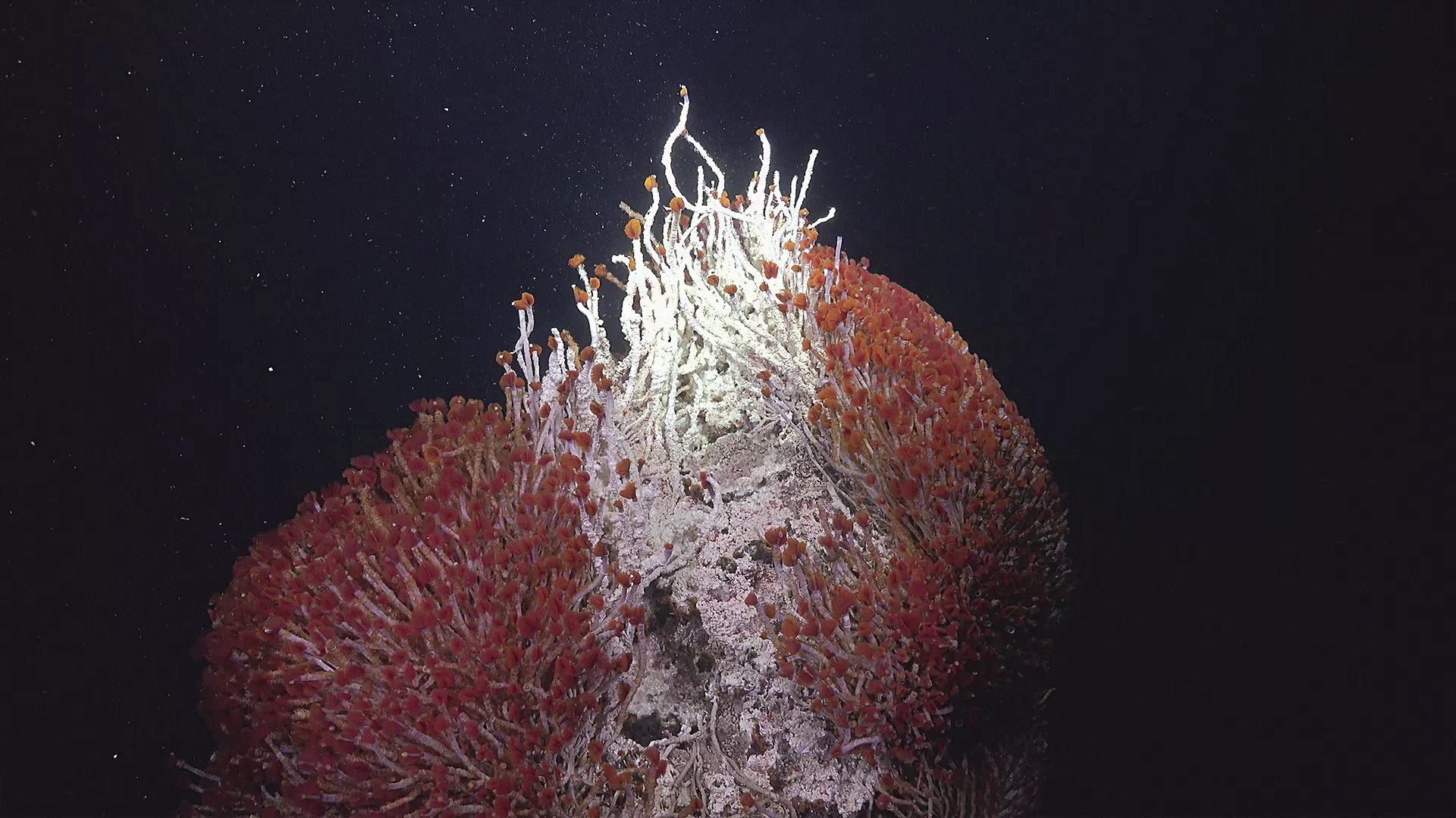 Türünün ilk örneği olan bu yaşam alanı, tuhaf solucan türleri, salyangozlar ve derinlerde yaşayan ahtapotlar da dahil olmak üzere daha önce hiç görülmemiş yaşam formlarıyla dolup taşıyor. Orta Amerika açıklarındaki Doğu Pasifik Yükseltisi'nde hidrotermal bacaların altında yer alan ekosistem, Falkor araştırma gemisindeki bilim insanlarının deniz tabanı katmanlarını kazımak için robotik bir kol kullanmasıyla bulundu.