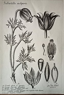 Dün gözlem ve türe eklediğim Pulsatilla vulgaris bitkisini bugün çizerek pekiştirmek istedim. Sol altta, bitkinin sağ yanındaki harf karşılıklarını okuyabilirsiniz. Herkese bol çiçekli günler!