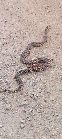 Dün Tekirdağ'ın Ergene ilçesi Velimeşe köyünde bir aracın ezdiği bu yılanı sizlerle paylaşmak istedim türü ile ilgili biraz araştırma yaptım ancak pek emin olmadığım için herhangi bir bilgi yazmadım. Bu türün takson bilgilerini Evrim Ağacı üyeleri ve bilimseverlere bırakıyorum.