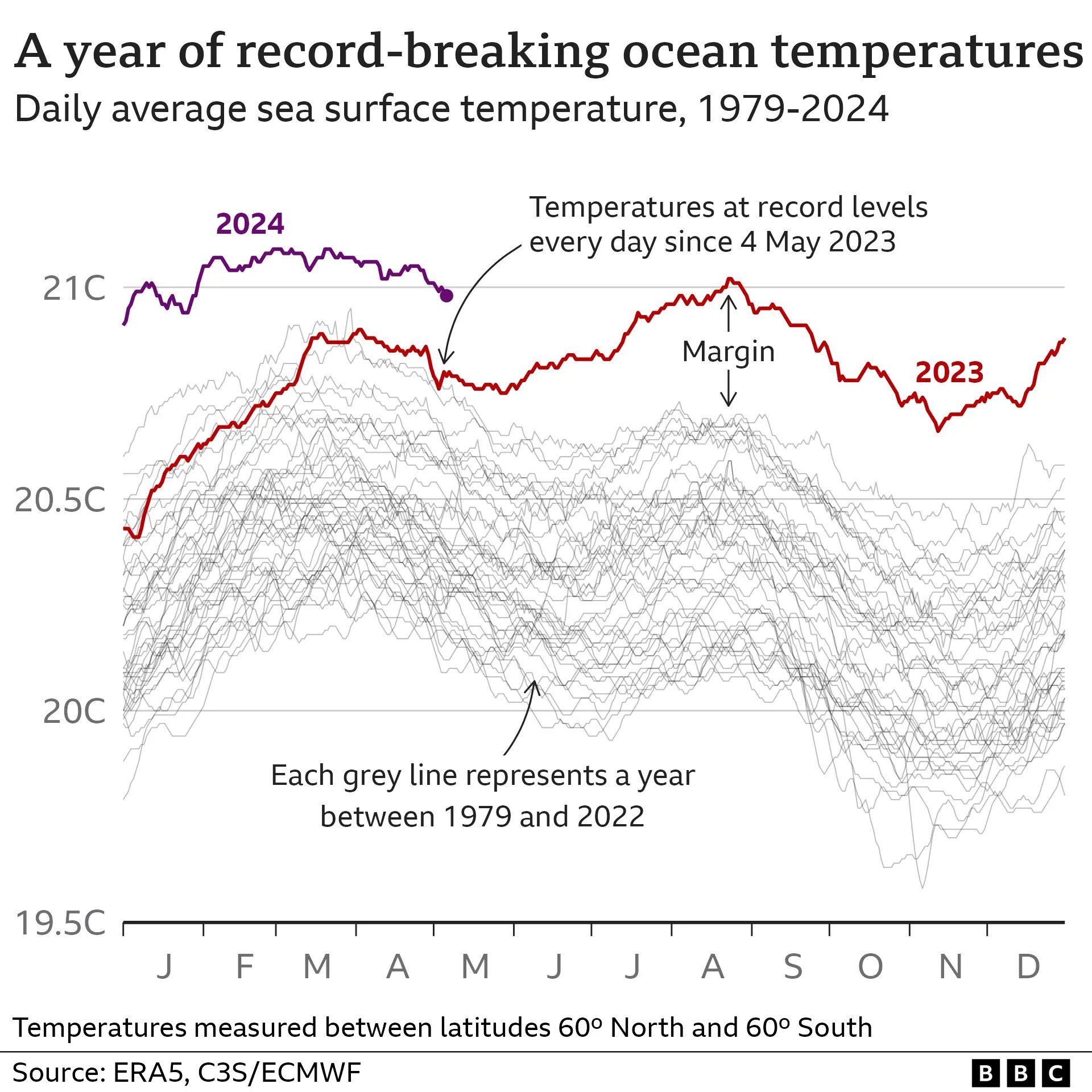 BBC tarafından yapılan analize göre, iklim değişikliğinin etkisiyle dünya okyanusları geçtiğimiz yıl boyunca her gün sıcaklık rekorları kırdı. Copernicus İklim Servisi verilerine dayanarak yapılan analiz, neredeyse 50 günün, yılın mevcut en yüksek sıcaklık değerlerini kırdığını ortaya koydu. Bu sıcaklık artışının başlıca sebepleri, gezegeni ısıtan gazlar ve El Niño gibi doğal hava olayları. Aşırı ısınan okyanuslar, deniz yaşamını olumsuz etkiledi ve mercan ağartma dalgasına neden oldu. Bu durum, okyanusların iklim değişikliği açısından önemli bir gösterge olduğunu ve insan kaynaklı etkilerin giderek arttığını gösteriyor. Artan deniz sıcaklıkları, deniz yaşamı üzerinde ciddi etkiler yaratıyor ve hatta bazı türlerin yok olma riskiyle karşı karşıya kalmasına neden oluyor. Ayrıca, El Niño'nun etkisiyle deniz sıcaklıklarının daha da arttığı ve tropikal fırtınalara ekstra enerji vererek zararlı kasırga sezonlarını tetikleyebileceği belirtiliyor. Uzun vadede, buz tabakalarının erimesi ve derin okyanusların ısınması gibi etkilerin deniz seviyesinin yükselmesine neden olacağı ve toplumun buna uyum sağlaması gerekeceği uyarısında bulunuluyor. Ancak emisyonların azaltılmasıyla bu etkilerin hafifletilebileceği vurgulanıyor.