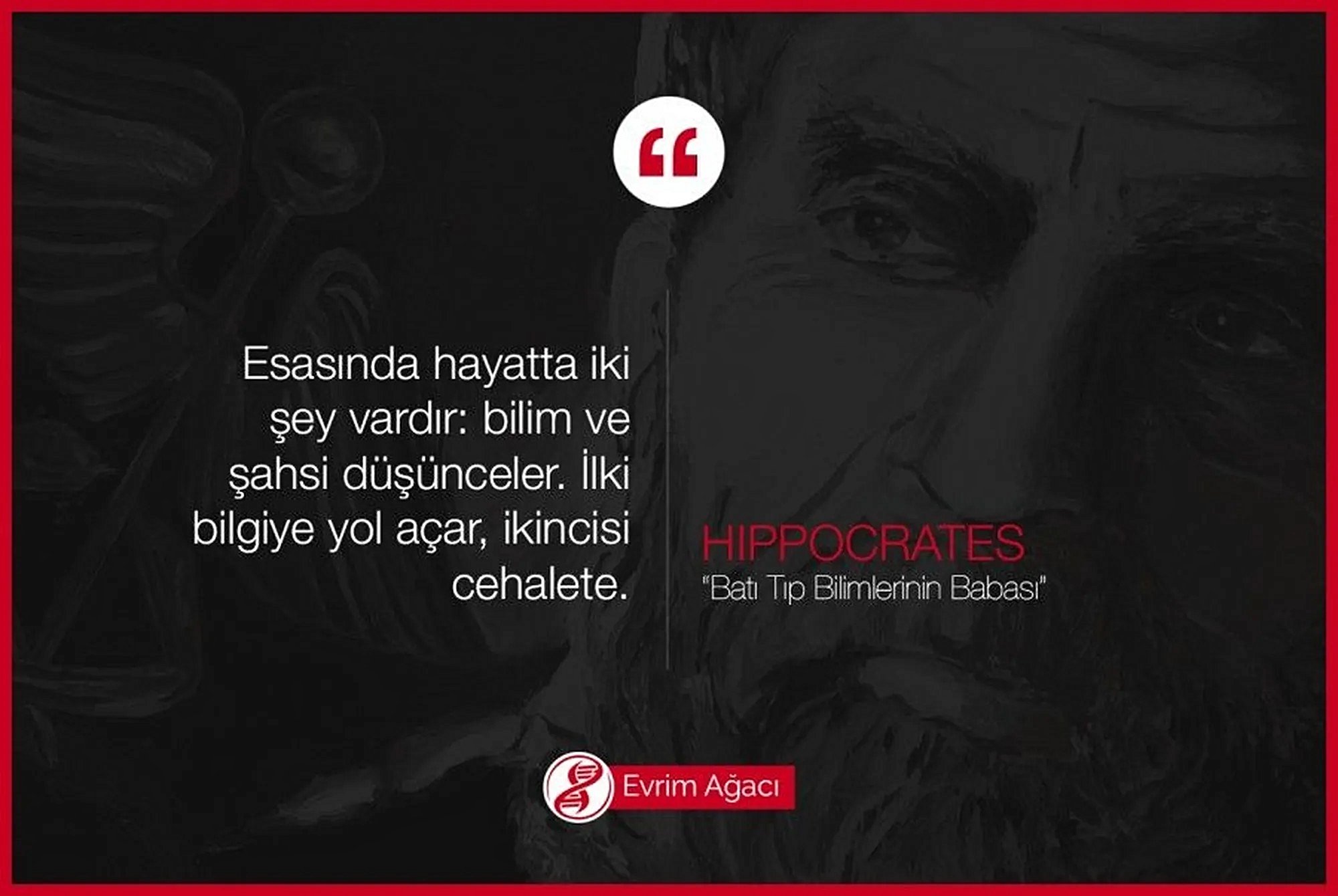 Esasında hayatta iki şey vardır: bilim ve şahsi düşünceler. İlki bilgiye yol açar , ikincisi cehalete. HIPPOCRATES* Batı tıp bilimlerinin babası